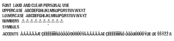Loud and Clear เป็นแบบอักษรที่โดดเด่นซึ่งออกแบบมาสำหรับ Windows ที่มีลักษณะเด่นด้วยพื้นผิวที่หยาบและมีลักษณะเหมือนสเตนซิล รวมถึงความสวยงามในแบบอุตสาหกรรม แบบอักษรนี้มีความหนาที่สม่ำเสมอในตัวอักษรพิมพ์ใหญ่และพิมพ์เล็ก ซึ่งเสริมด้วยขอบที่หยาบที่ทำให้ดูเหมือนทำด้วยมือ เหมาะสำหรับการใช้งานที่หลากหลาย มันโดดเด่นในงานออกแบบที่ต้องการการแสดงผลที่ชัดเจน ทำให้เหมาะสำหรับโปสเตอร์ บรรจุภัณฑ์ และแบรนด์ในเมือง